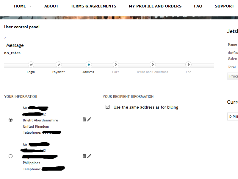 $errors['no_rates'] = JText::_('NO_SHIPPING_METHOD_FOUND');So I don't know what is displaying you the error message but it does not read the right part in the array.
