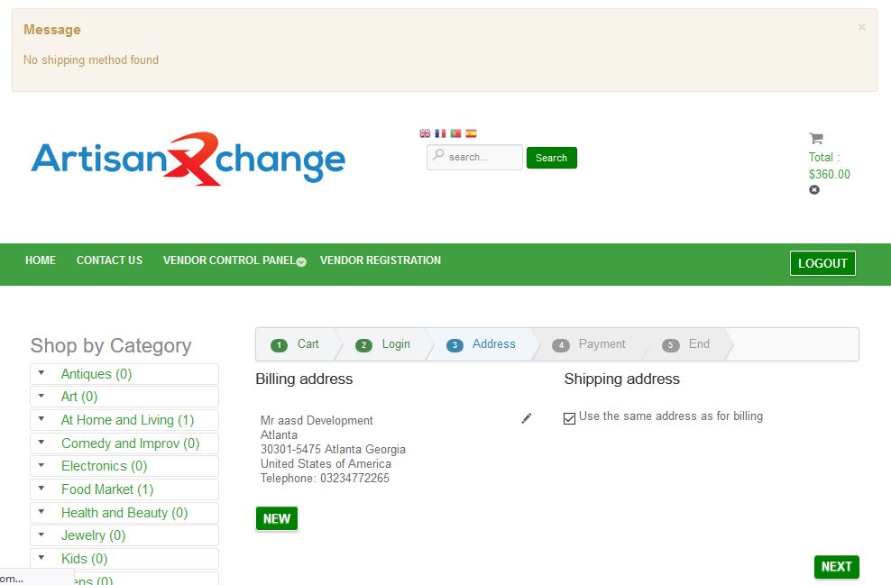 No Shipping Method Found