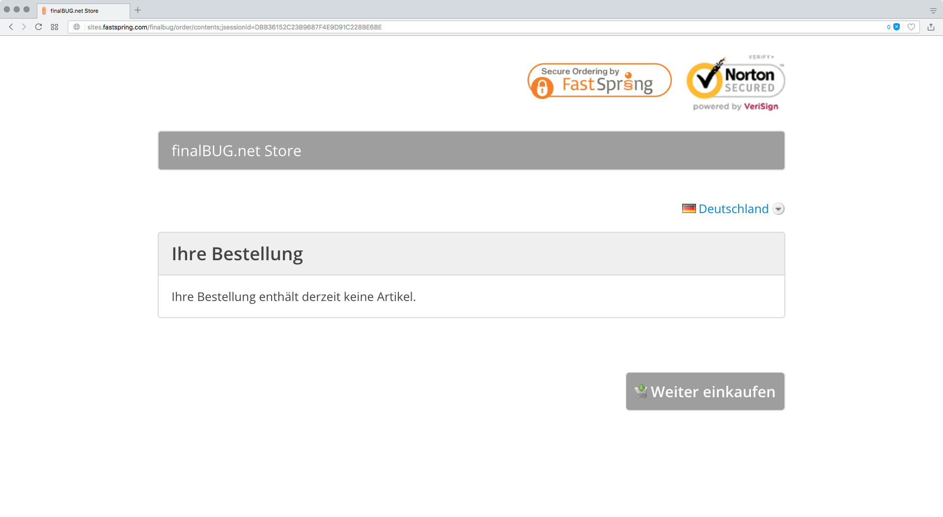 What is happening is that the finalbug Fast Spring shop shows up but there is no product in it!