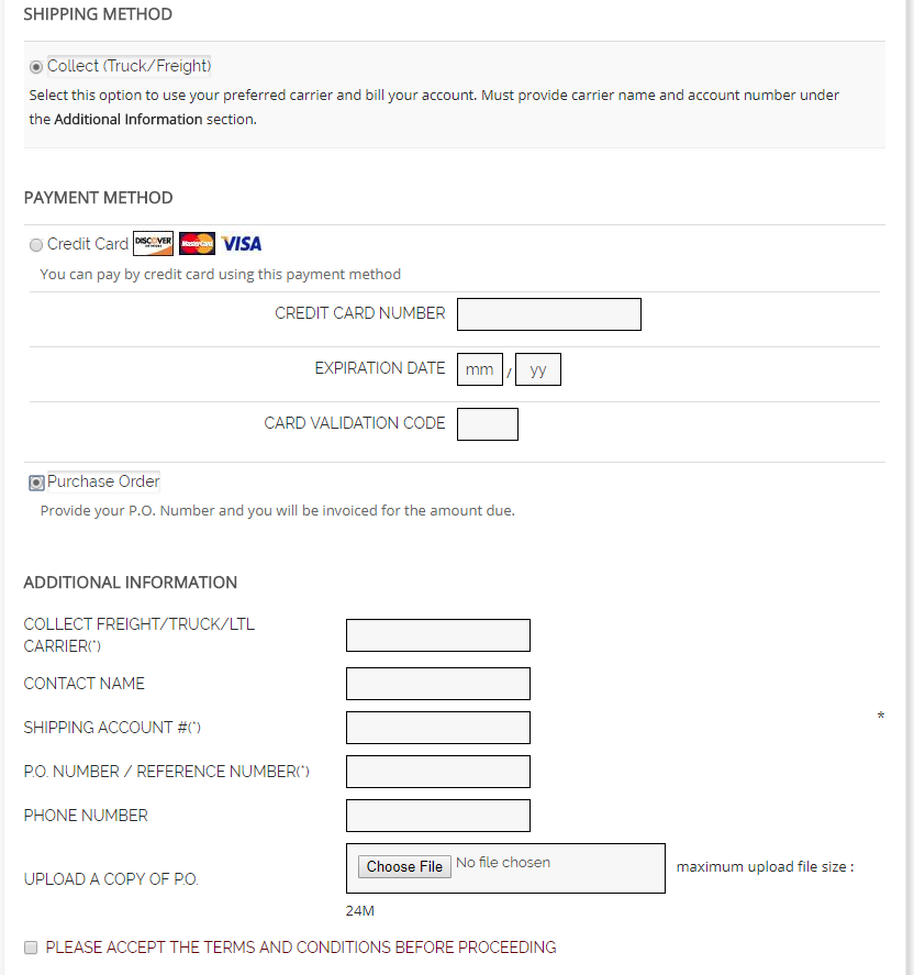 You can now send us a purchase order for the amount of $x.xx using the following information. We will now process your order and contact you when completed.