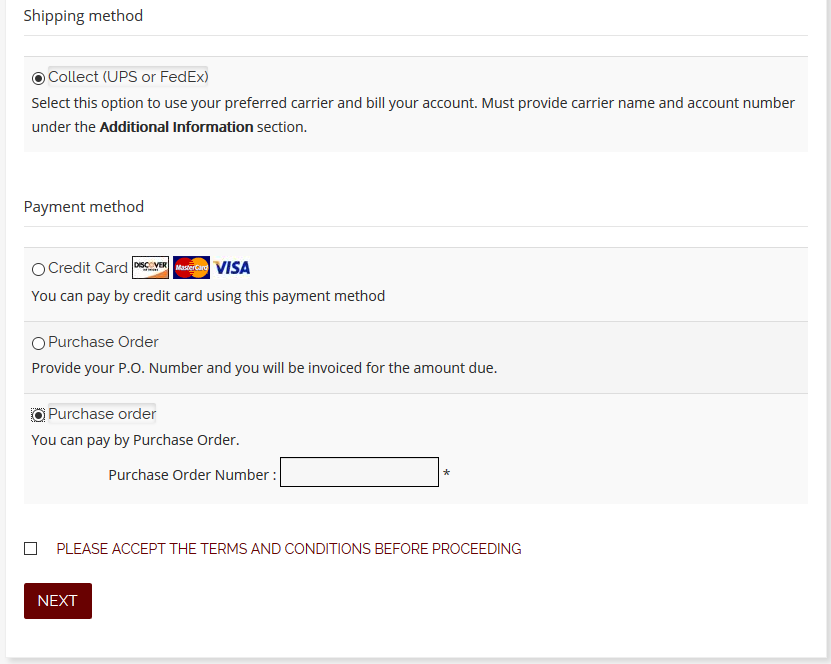 This is not necessary, since we give them the ability to upload a Purchase Order during the checkout process.