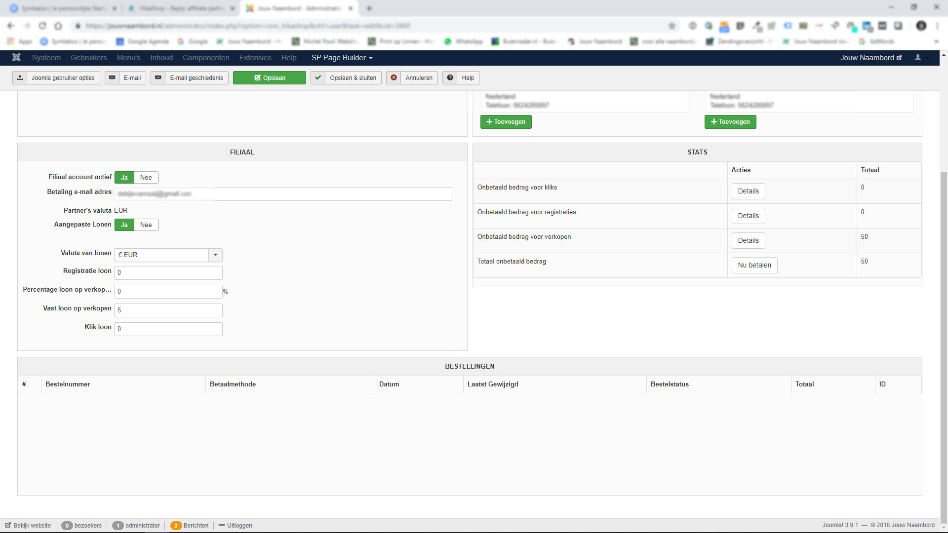And if I check the settings of the partner, I see that the fee has been added and I can see the order added to the listing of the partner orders: