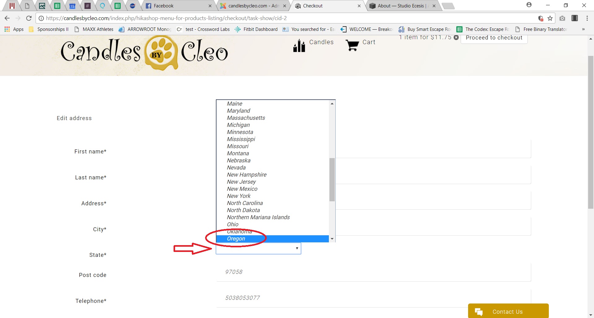 When checking out and entering a shipping address, the drop-down menus show the proper states and countries, but when you select one, it does not show in form (see attached)