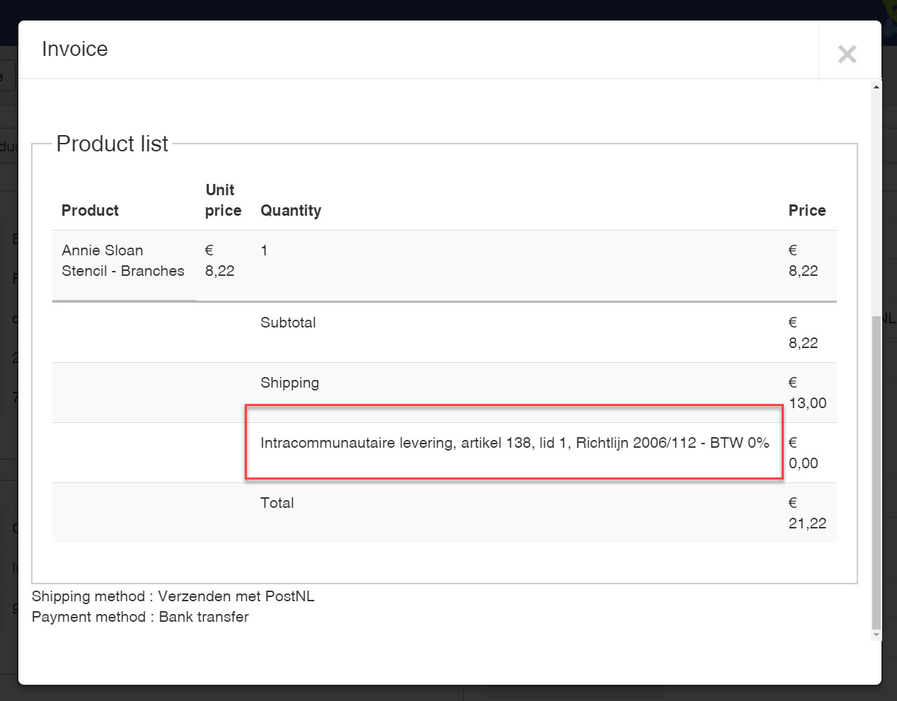 I like to have VAT 0% on my invoice (not the PDF invoice)