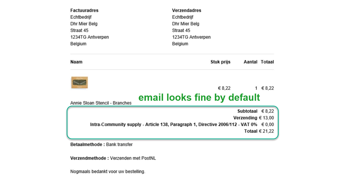 In other the e-mail view this is no issue and works fine by default, except for the invoice.