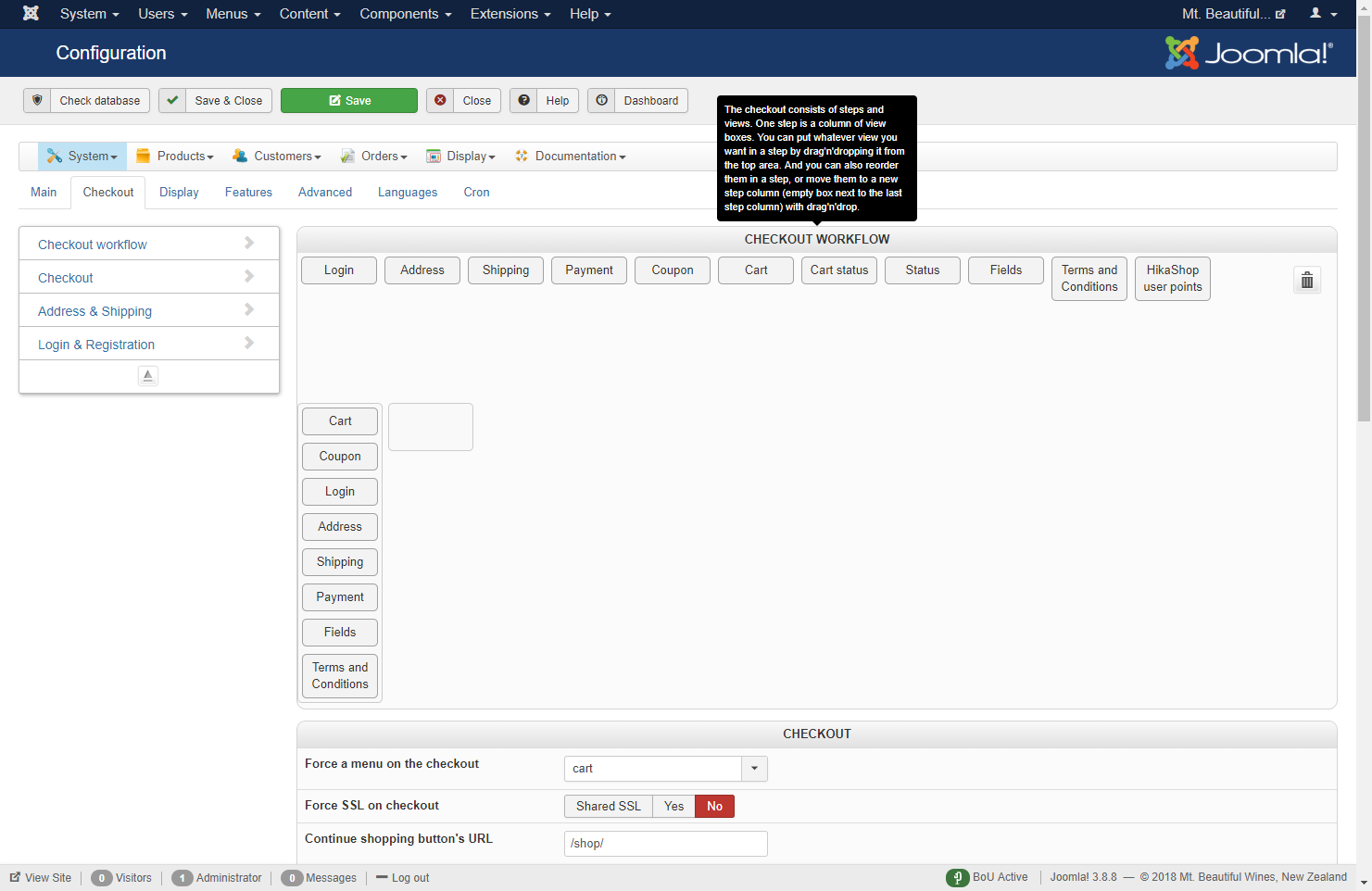 We inherited a HikaShop powered website and our client wants to setup a coupon. After closer examination, it doesn't look like the Checkout Workflow is working properly. The screen looks pretty different than the documentation I found here: www.hikashop.com/support/documentation/4...eckout-workflow.html . I will upload a screenshot of what we see. I have checked this on a Mac & PC, Chrome & Firefox.