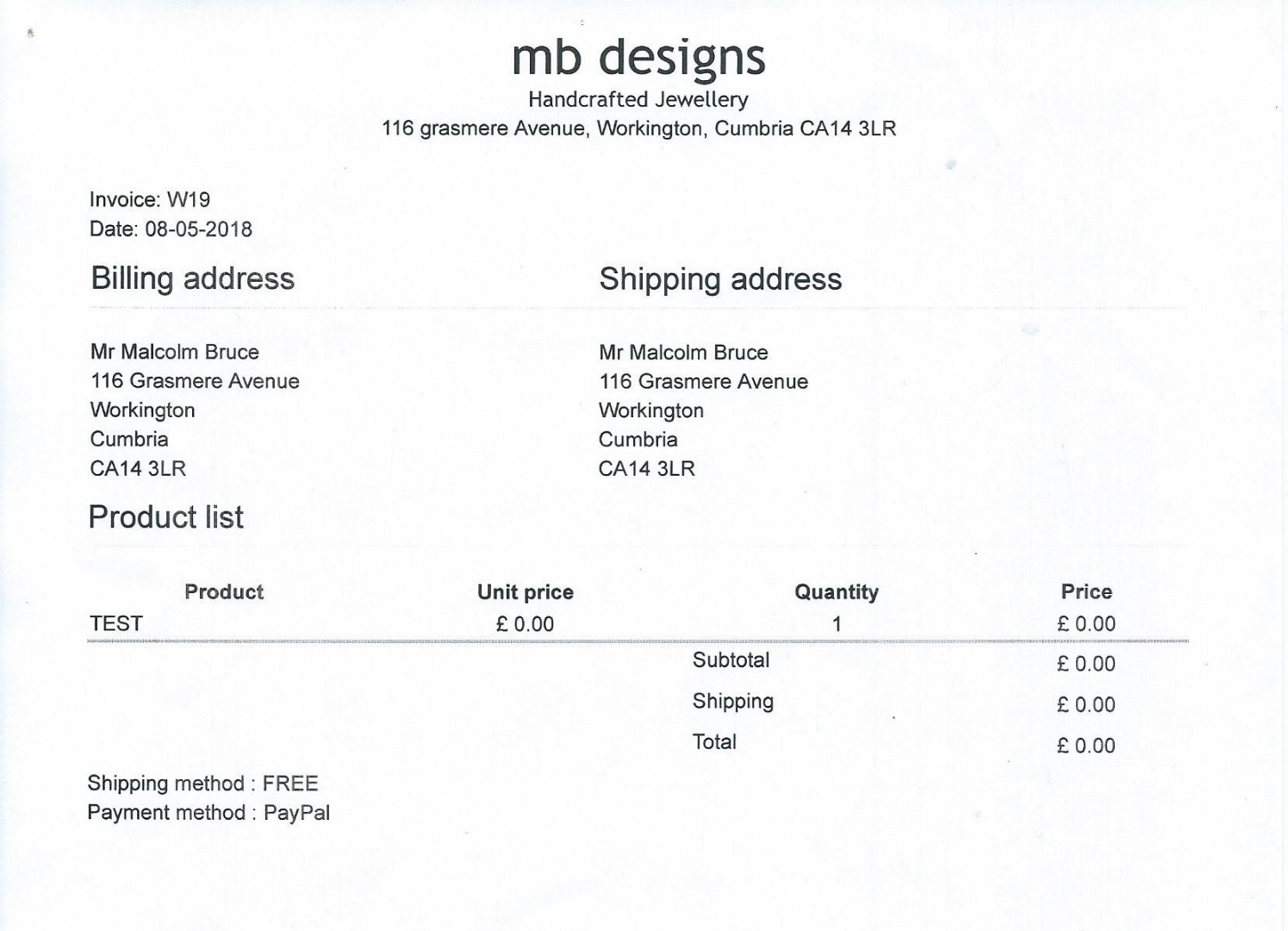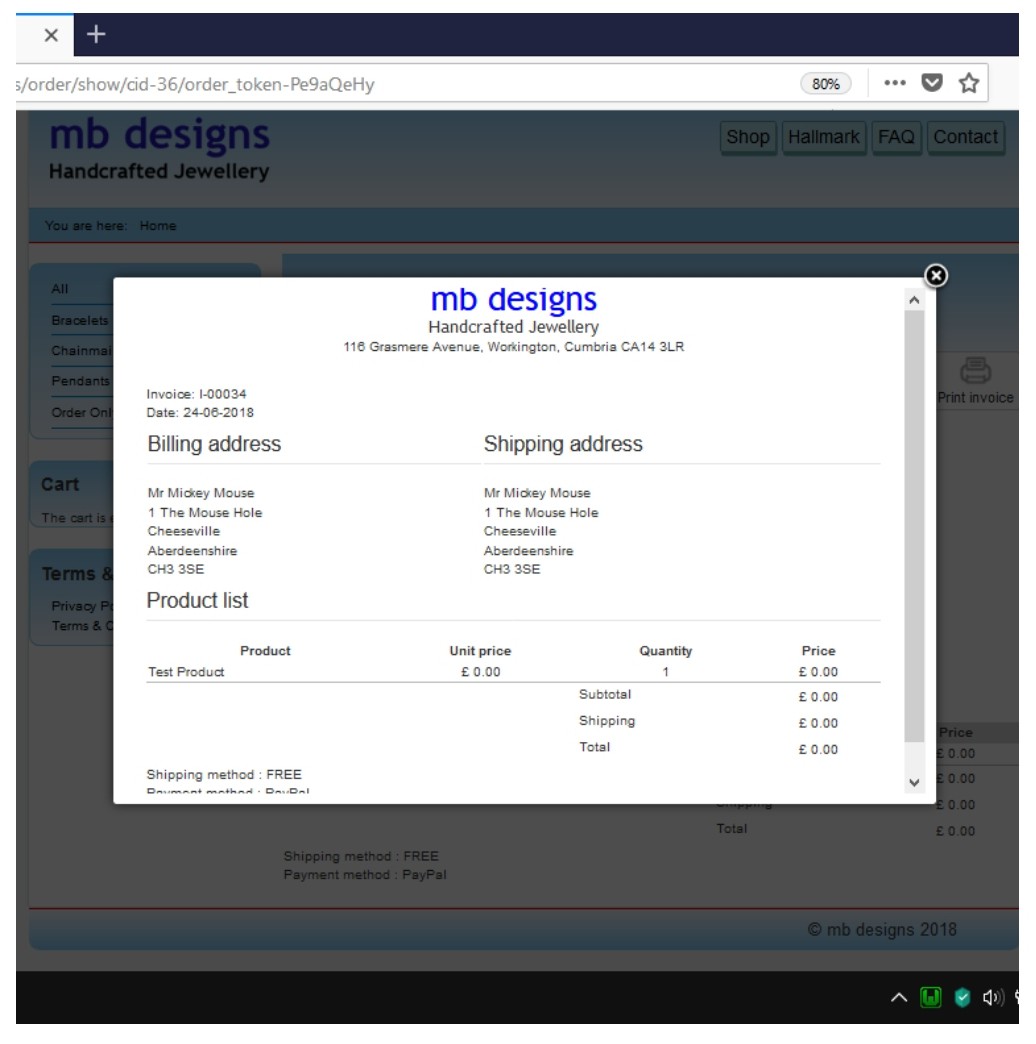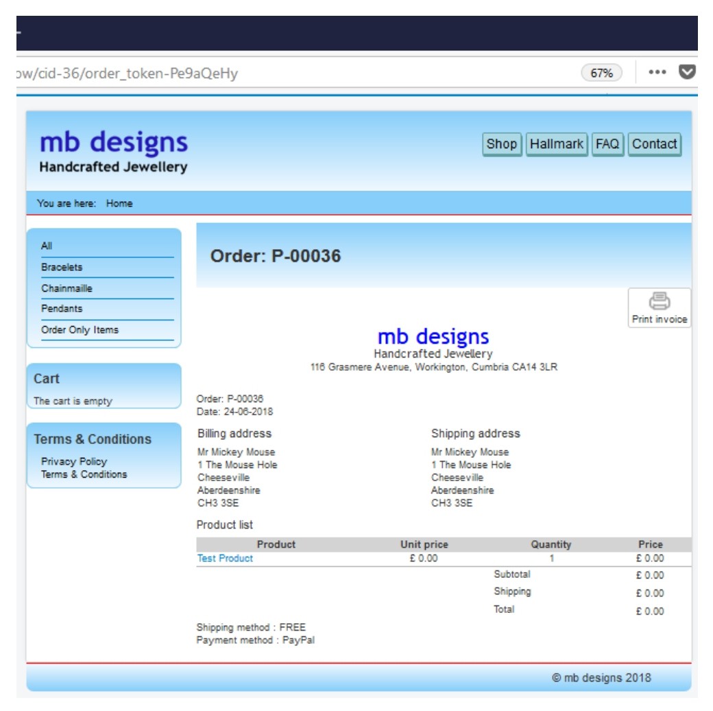Any changes or updates are tried on the local server and then uploaded to the live site. As the print previews were correct I didn’t actually print out the invoices, hence the discrepancy before realising there was a problem. (OK. Lesson learned – don't assume, check everything.)