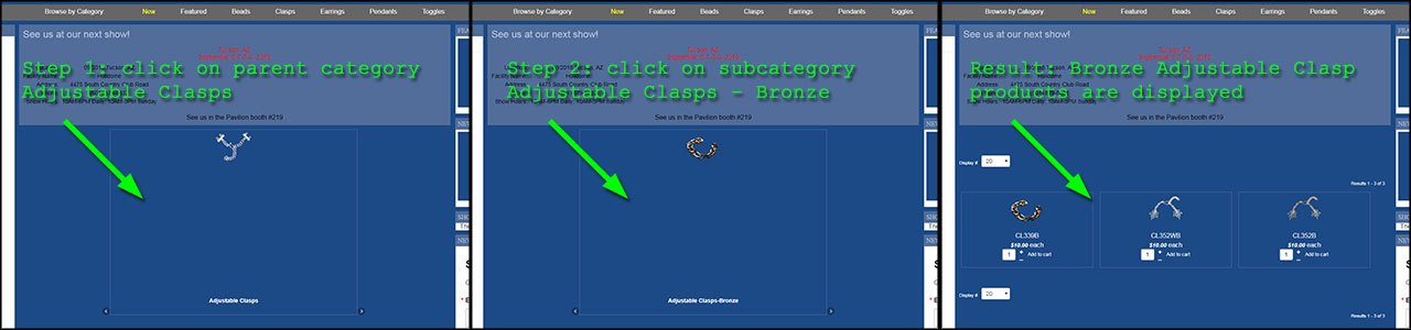 2) Clicking on a category slide displays all products under that category