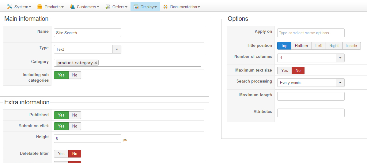 1. Go in the Joomla modules manager and edit the "HikaShop filters module". There, in the menu item id setting you can enter the id of the menu item you want to use to display the results.