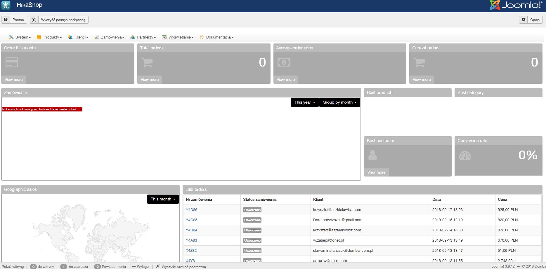 - You don't have any data (no purchases yet). So the dashboard it quite empty.