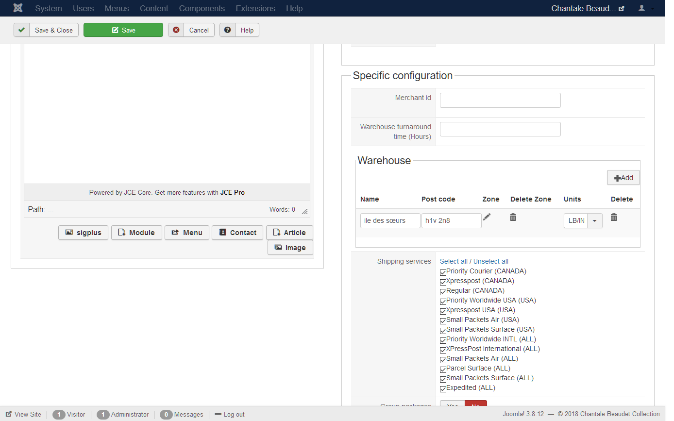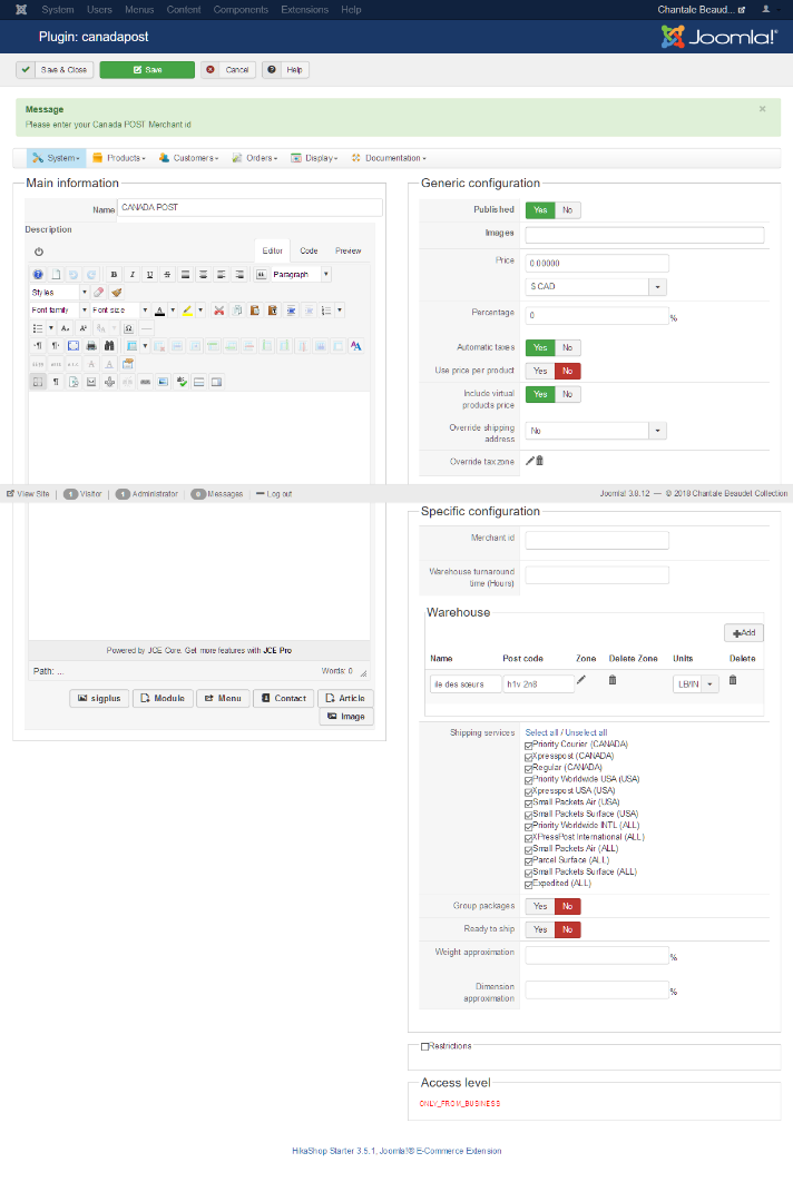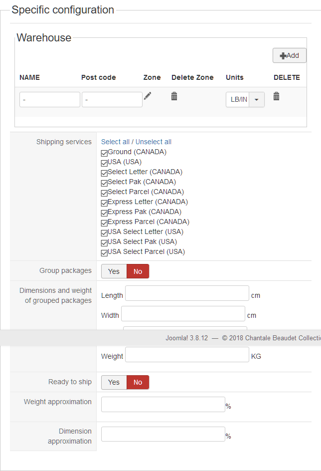 4. Regarding the canpar and canada post shipping methods, they don't appear because you didn't finish configuring them.