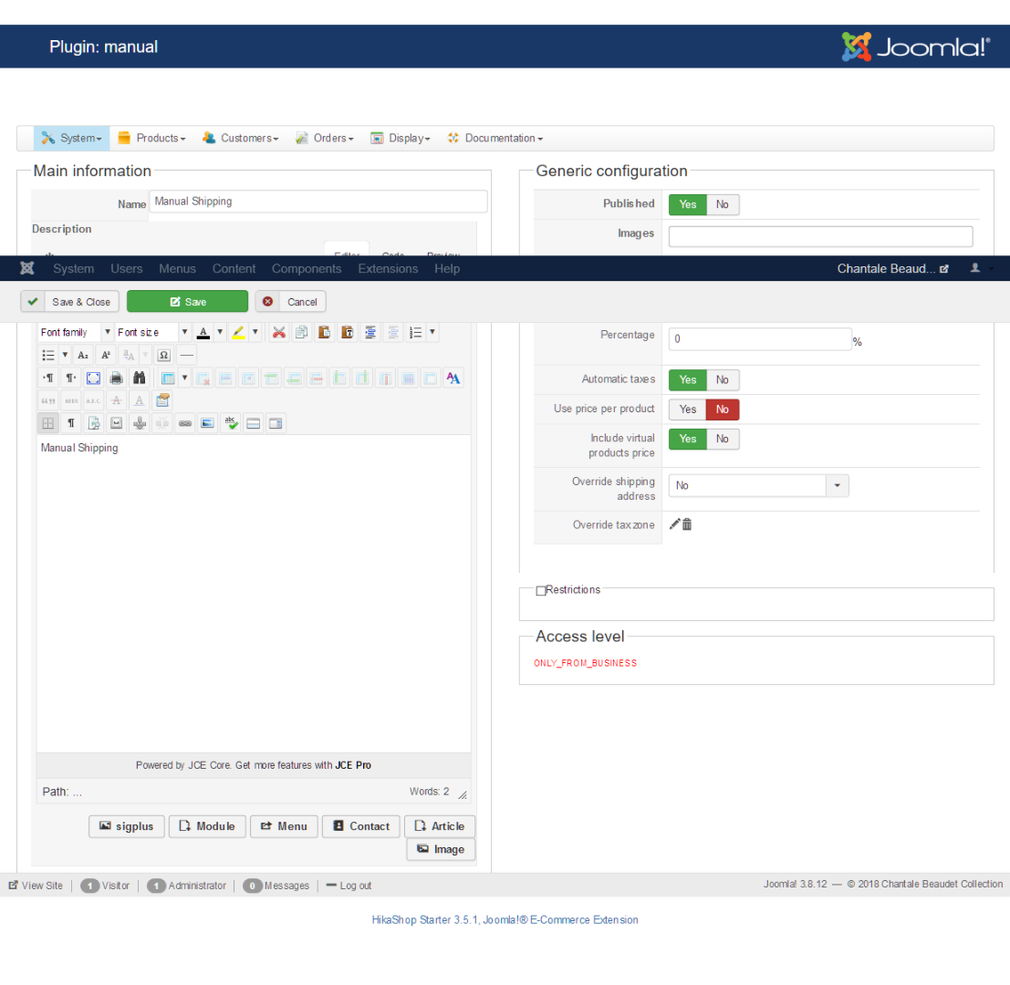 3. I don't know why the manual shipping method is free. I would say it is because you didn't enter anything in the "price" field of the shipping mehtod but I can't see the field on your screenshot of that shipping method as Joomla's floating footer goes over it. So I'm not sure what you entered in that field. Please check that you entered an amount in it.