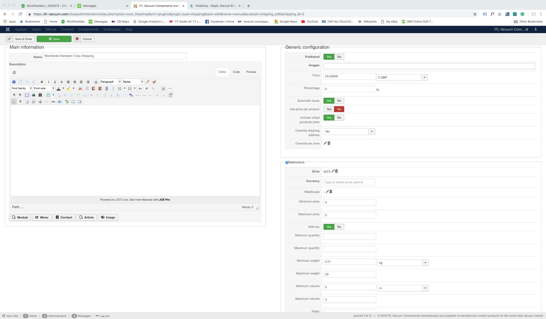 Some background - we have set up the UPS plugin and it seems to work fine - but as the client may change carrier I have set up some manual shipping methods as a back up.