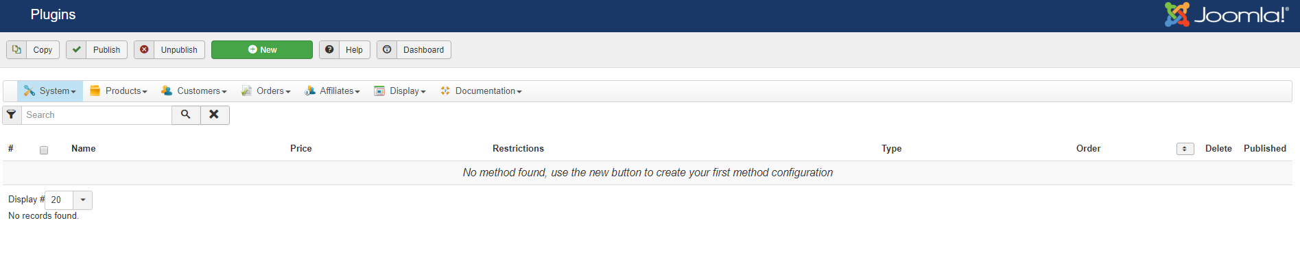Can you provide a screenshot of the listing of shipping methods in the menu System>Shipping methods ?