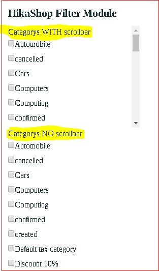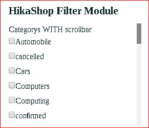If you want to create a checkbox filter with your categories or something else, but you have a huge list of checkboxes, you can add scrollbar to that list.
