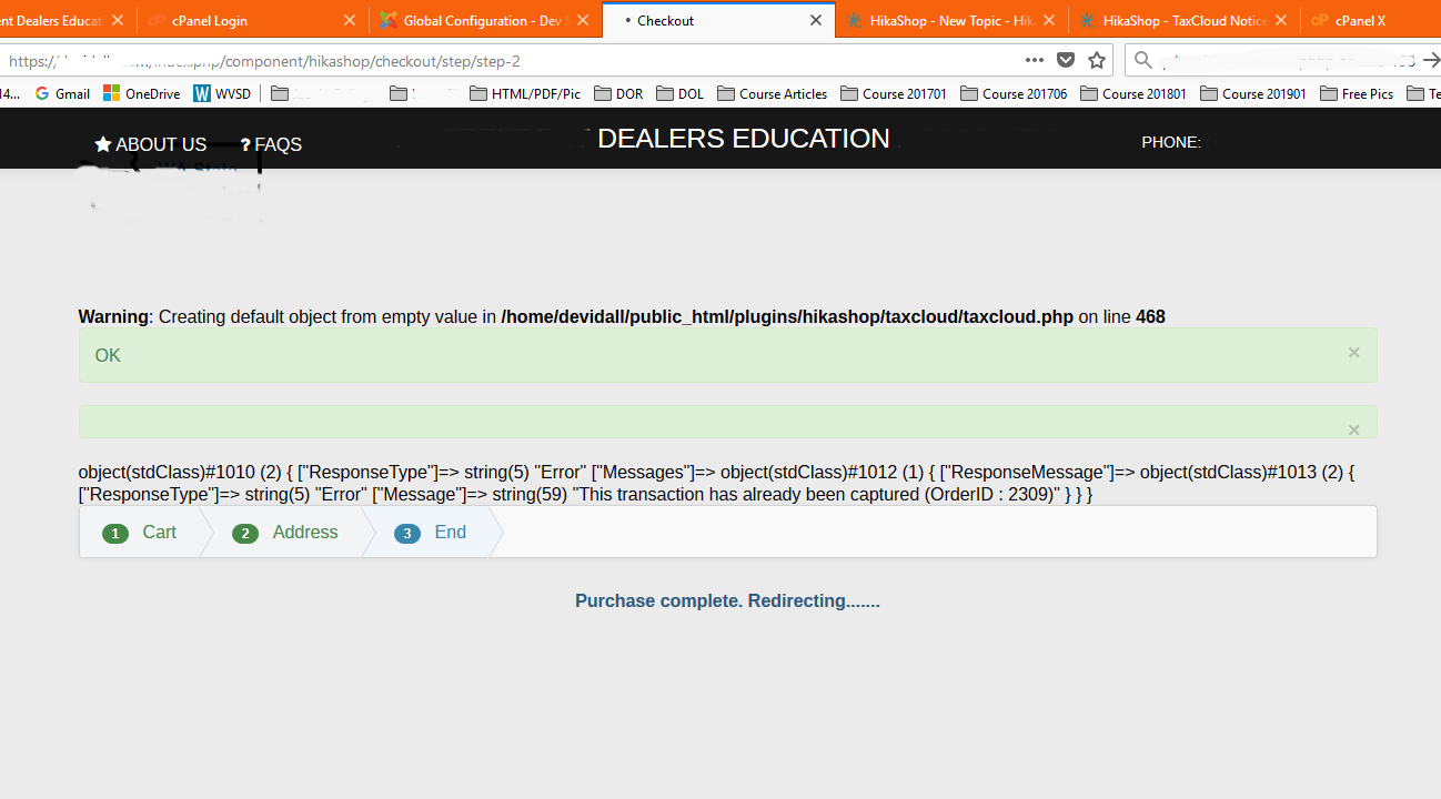 Warning: Creating default object from empty value in /home/devidall/public_html/plugins/hikashop/taxcloud/taxcloud.phhp on line 468.