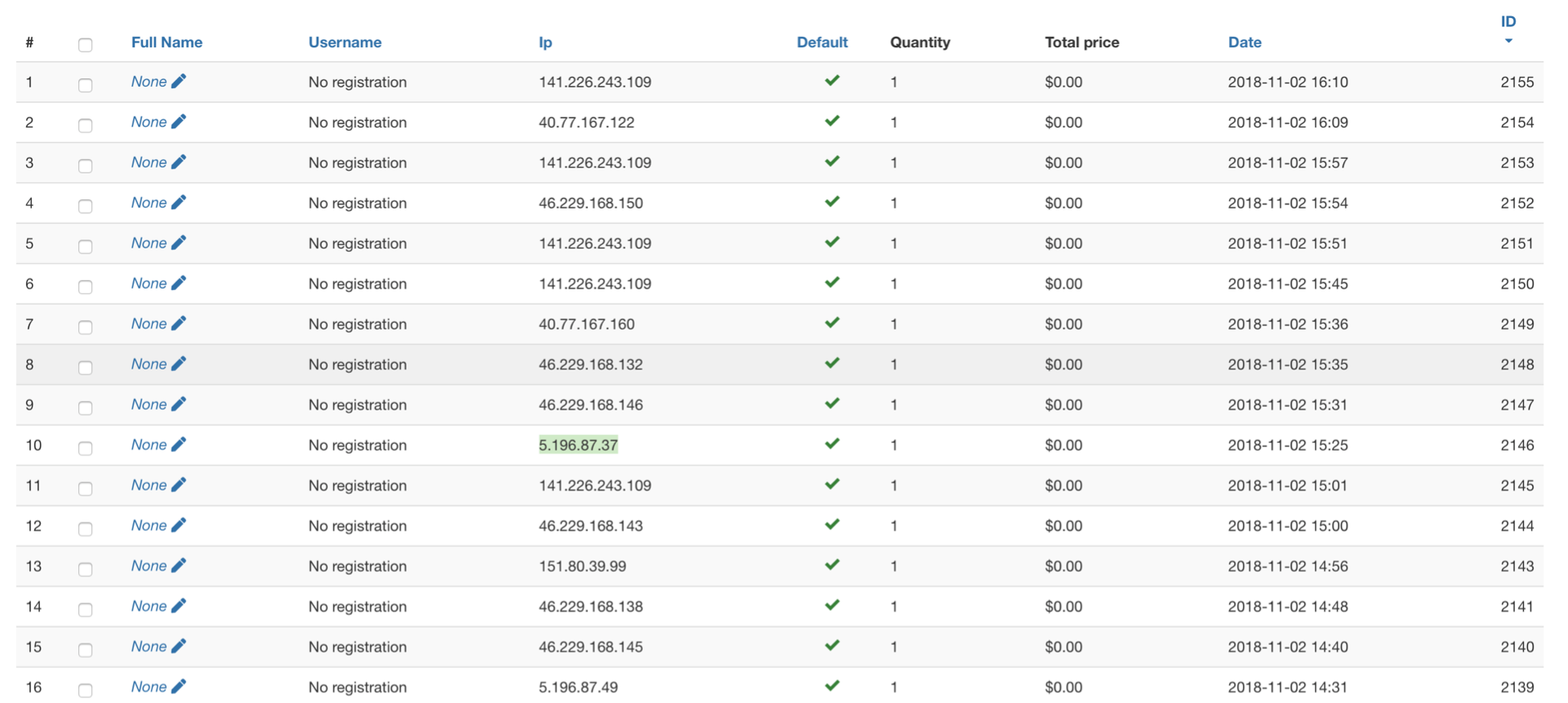When opening it, we find hundreds of records in there that say they have no registration. Our website receives some traffic throughout the day but never as much.