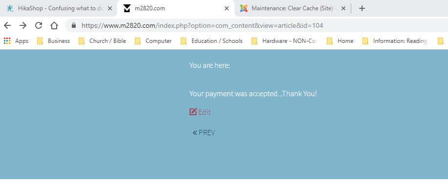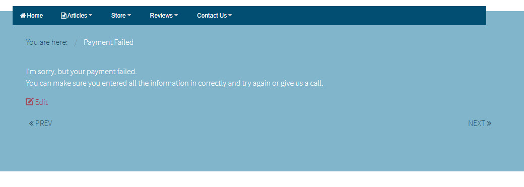 Now, it looks like your payment was not accepted. How do I get rid of the " < Prev " and " Next > " buttons and add the main menu or send them back to the store or to the home page?
