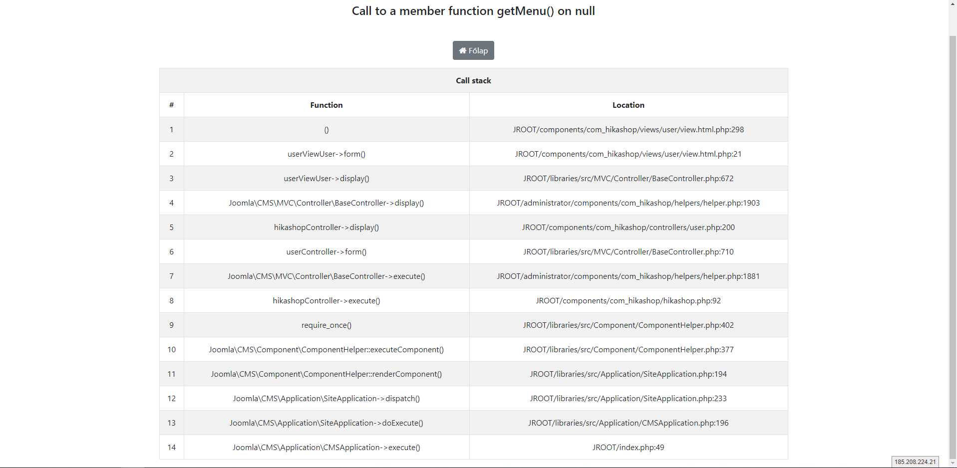 -- Error-message(debug-mod must be tuned on) -- : Call to a member function getMenu() on null