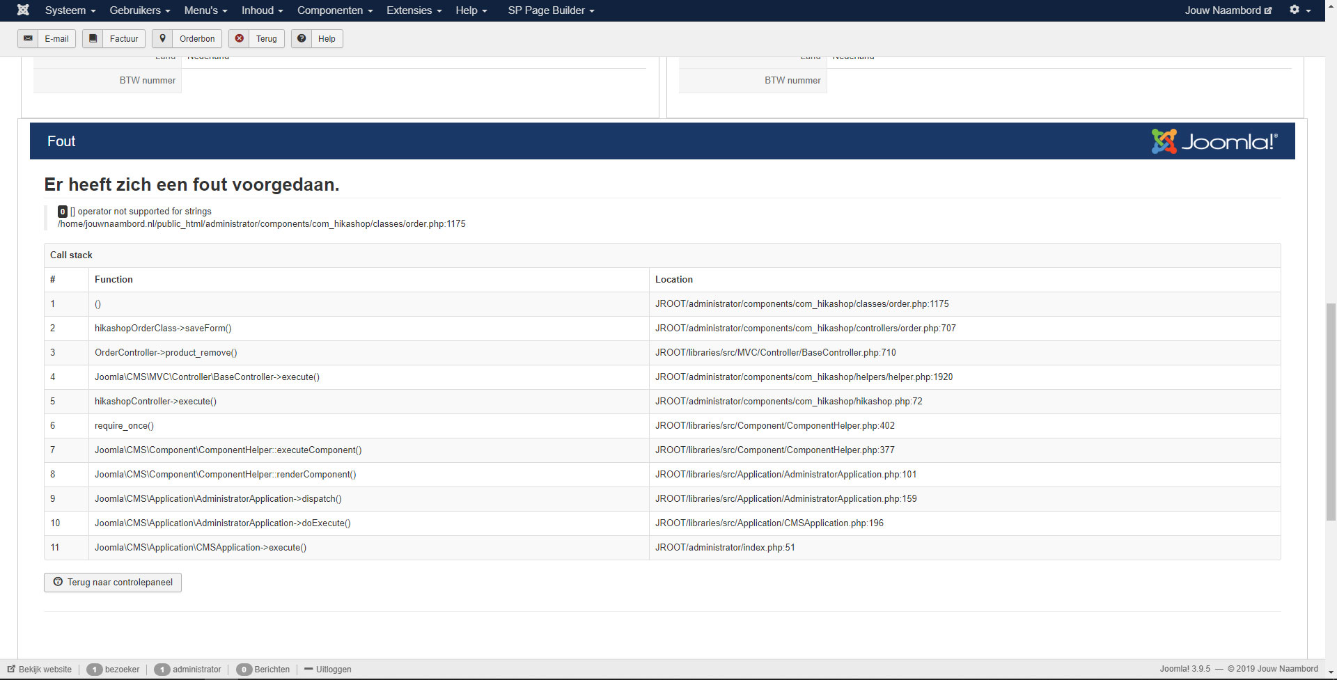 Every time I remove a product from an order I get an error and the sample image (custom_field)I wich is assigned to the order will disappear from the backend form. See the screenshots.
