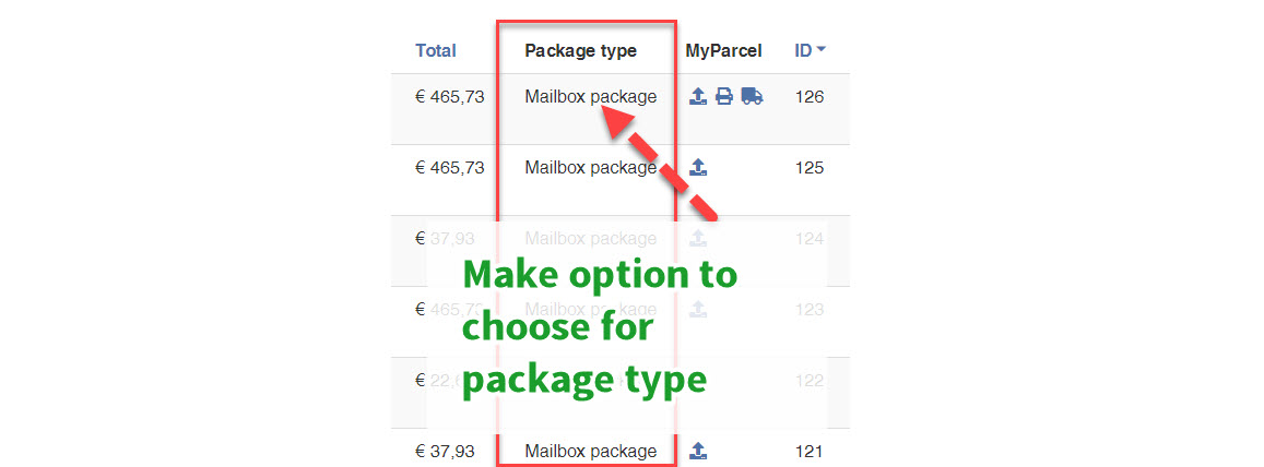 Is it possible to let the customer change the package type before the export to MyParcel?