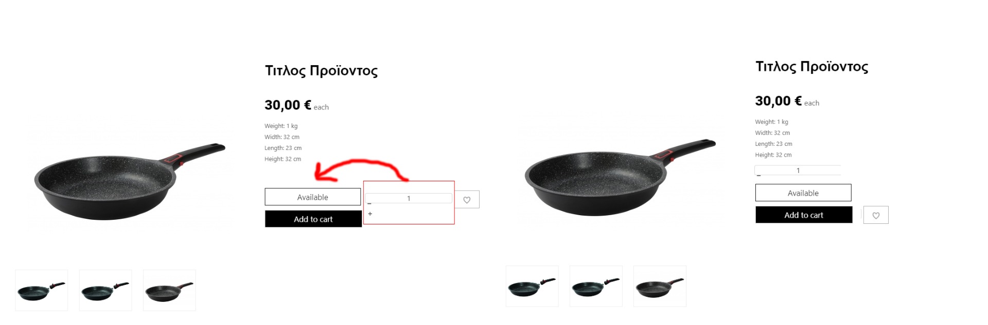 Note that the quantity input field can be displayed in different ways thanks to the "Quantity input method" setting of the HikaShop configuration.