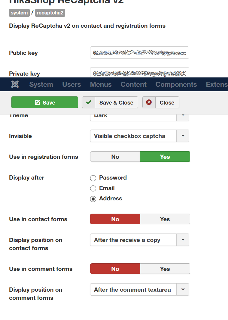 Well, since you're using HikaShop's recaptcha and not Joomla's, you could activate the Redirect Joomla registration to HikaShop plugin via the Joomla plugins manager to use HikaShop's registration page only. That way, you'll be able to use the "after the address" mode of the plugin.