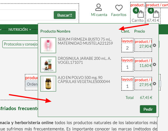 The thing is that if you check the HTML of the area, you can see that it is inside the area of the product / cart.php dashed border.