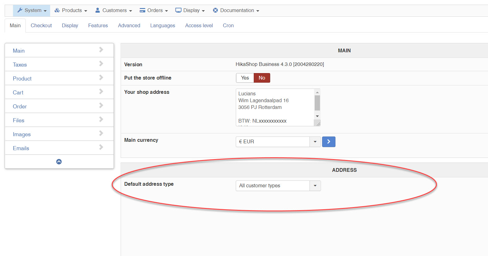 2 - I see an address configuration in the main configuration also not visible on one of the two sites.
