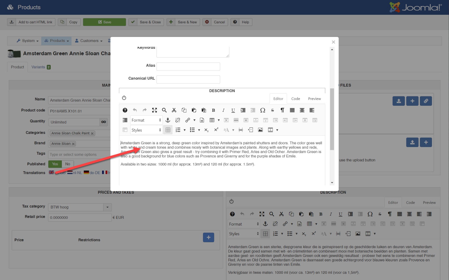Finally, for the description, I would recommend to change your main description to something like MY_PRODUCT_XXX_DESCRIPTION and then enter the description in all the languages so that the translation key is not super long.