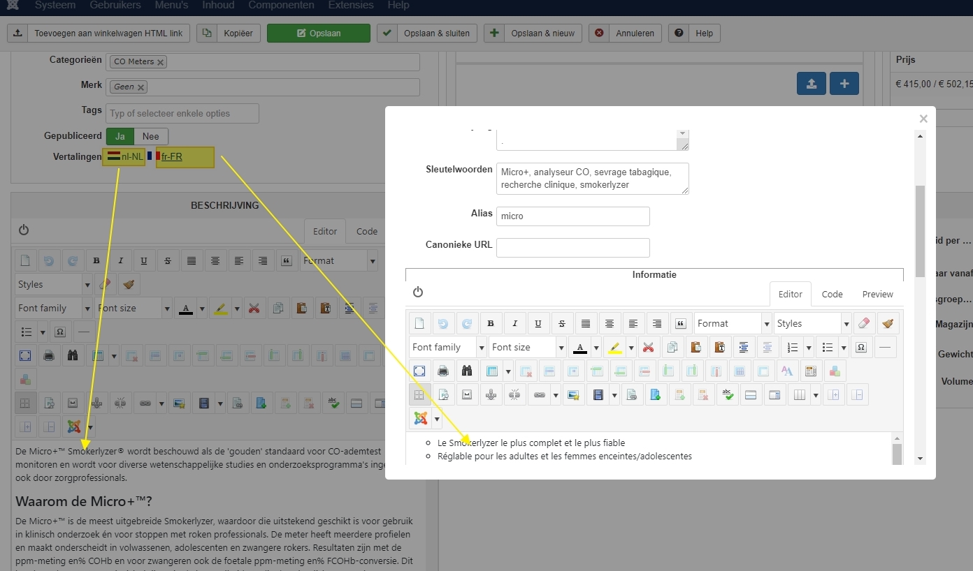 And when the page displays, the Falang driver system plugin will convert the translations on the fly.