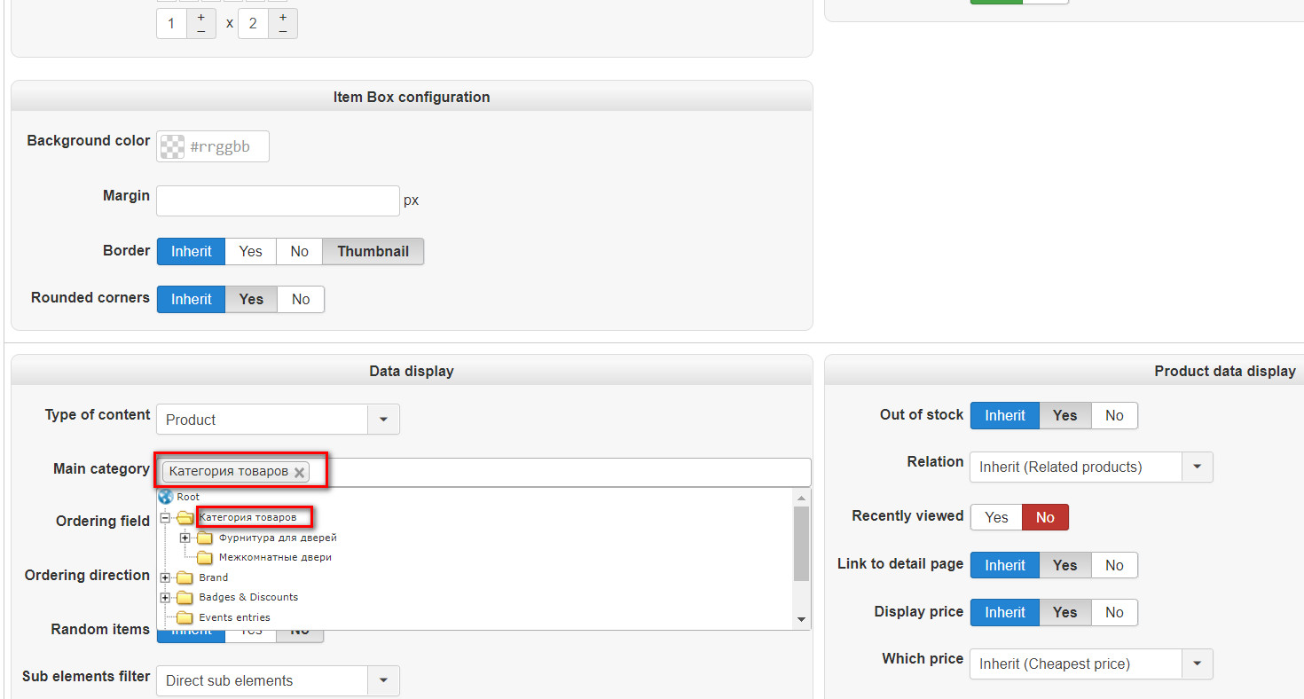 2. In "type of content" you need to select "categories" not "products". Otherwise, it will display a listing of the products directly under that category.