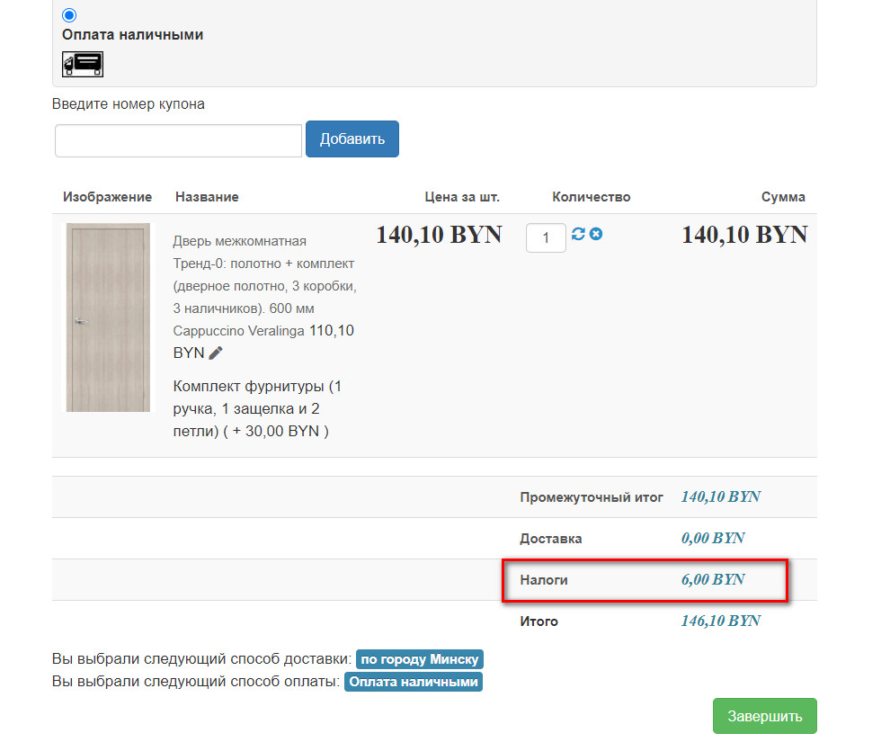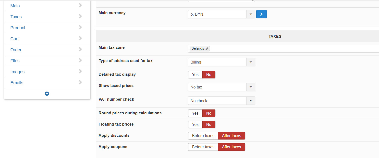 echo $this->currencyClass->format($taxes, $cart->full_total->prices[0]->price_currency_id);
