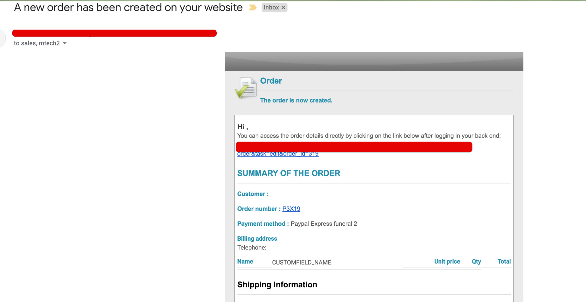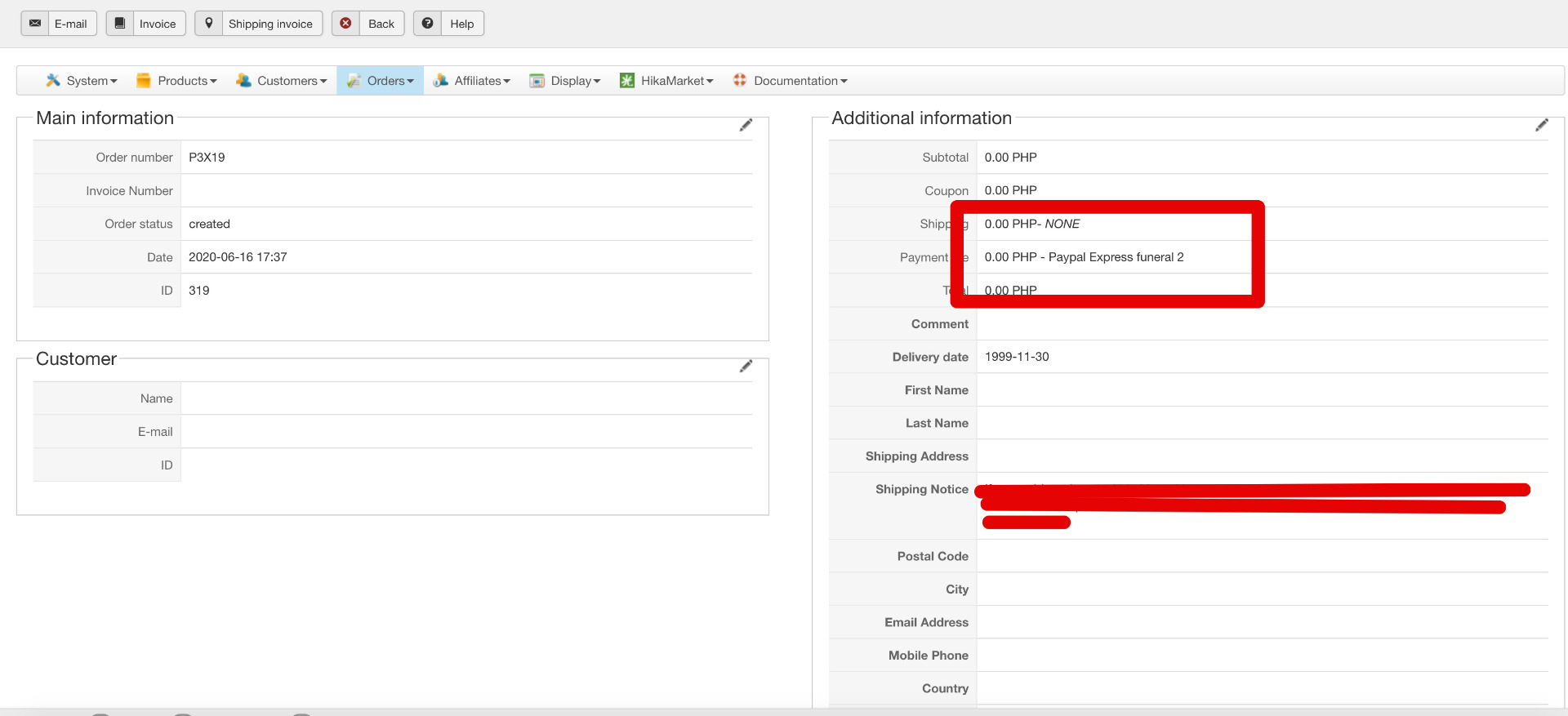 order created with out any basic information