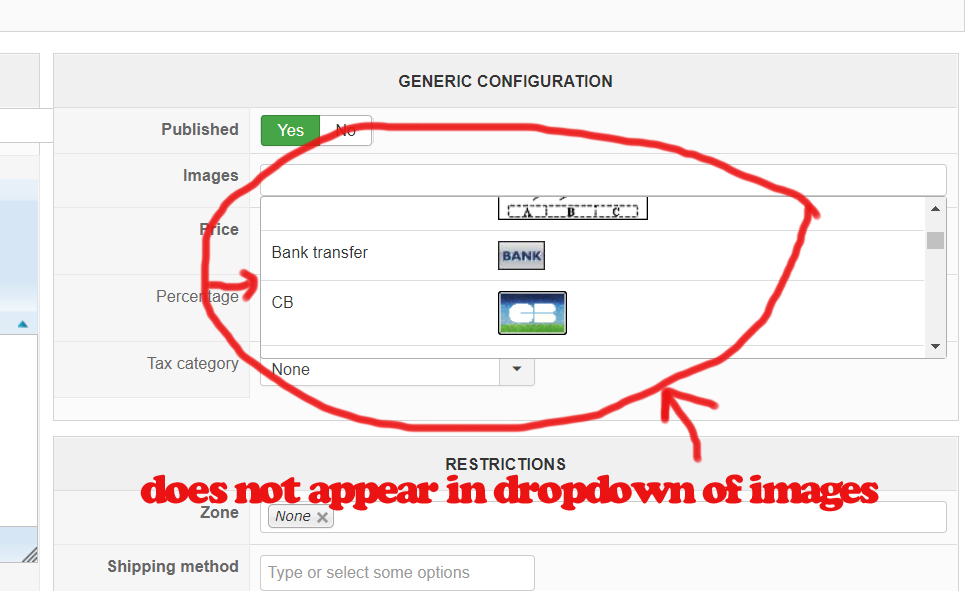 #5 (added) I added some new badges (right size n x 13pixels) for payment/shipping in /media/com_hikashop/images/shipping and /media/com_hikashop/images/payment but they don't appear in the dropdown list of badges. How can I make it appear as part of badges.