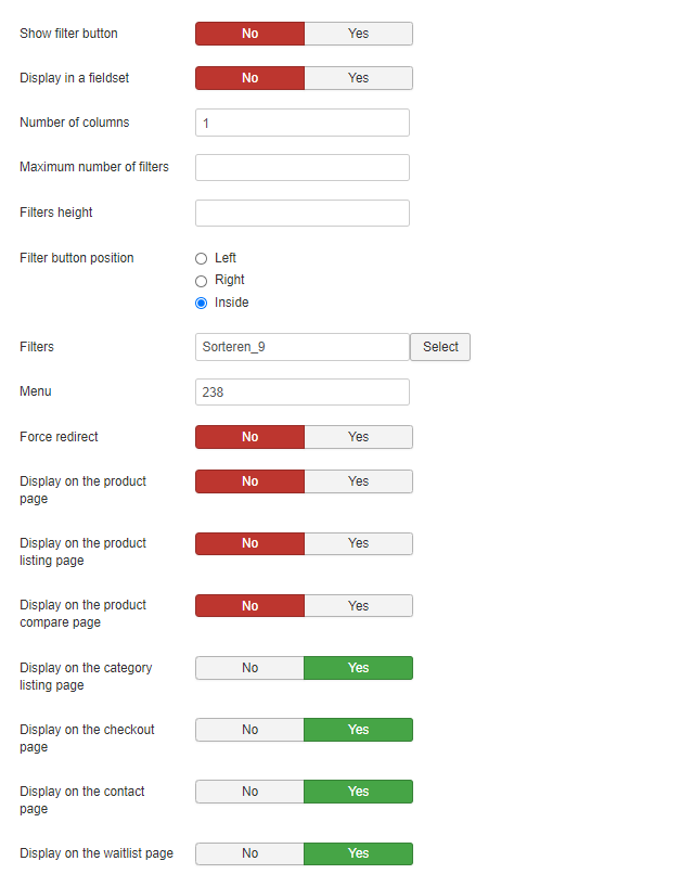 Within the module I select to NOT display the filter module on the product itself (but this leads to an empty column)