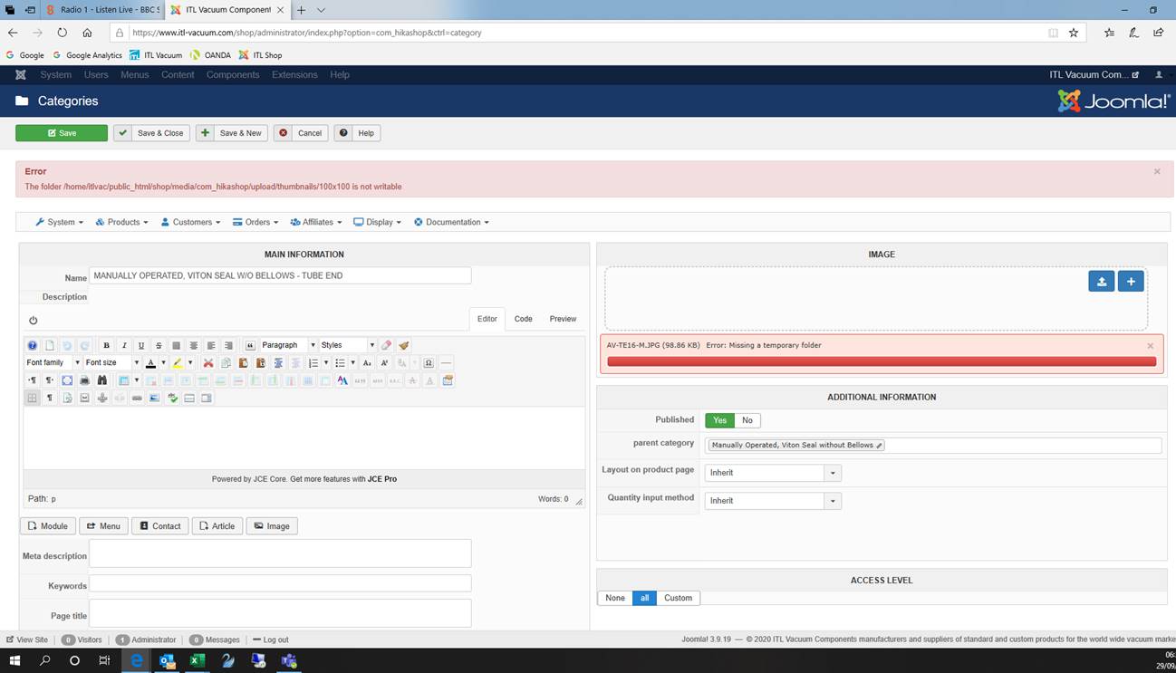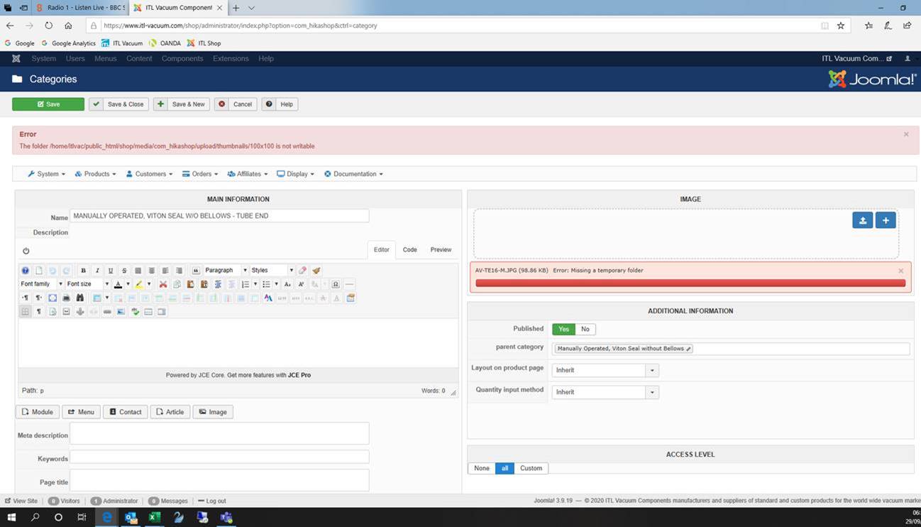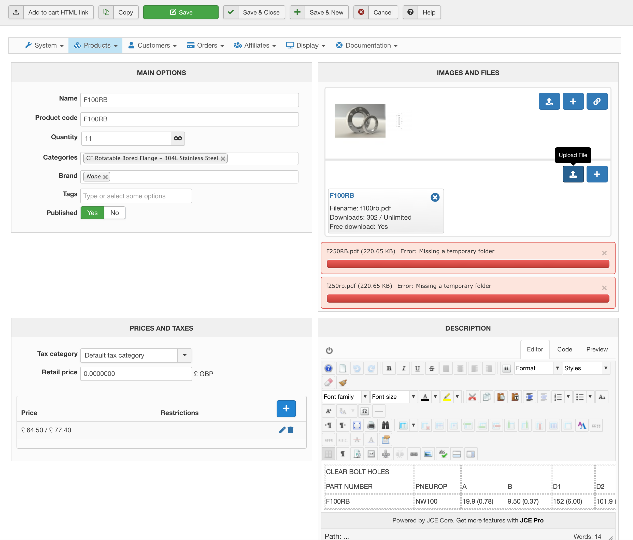 So you need to make sure that the tmp folder of the Joomla configuration is properly configured and writable.