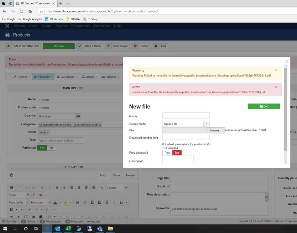 Well, I can't do much. All the errors you provide points at the same issue. The folder to upload the files is not accessible.