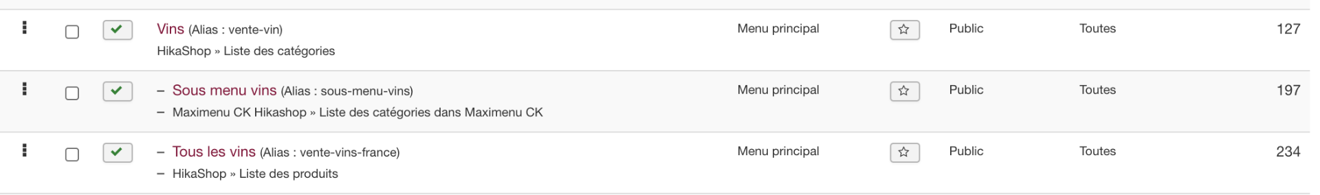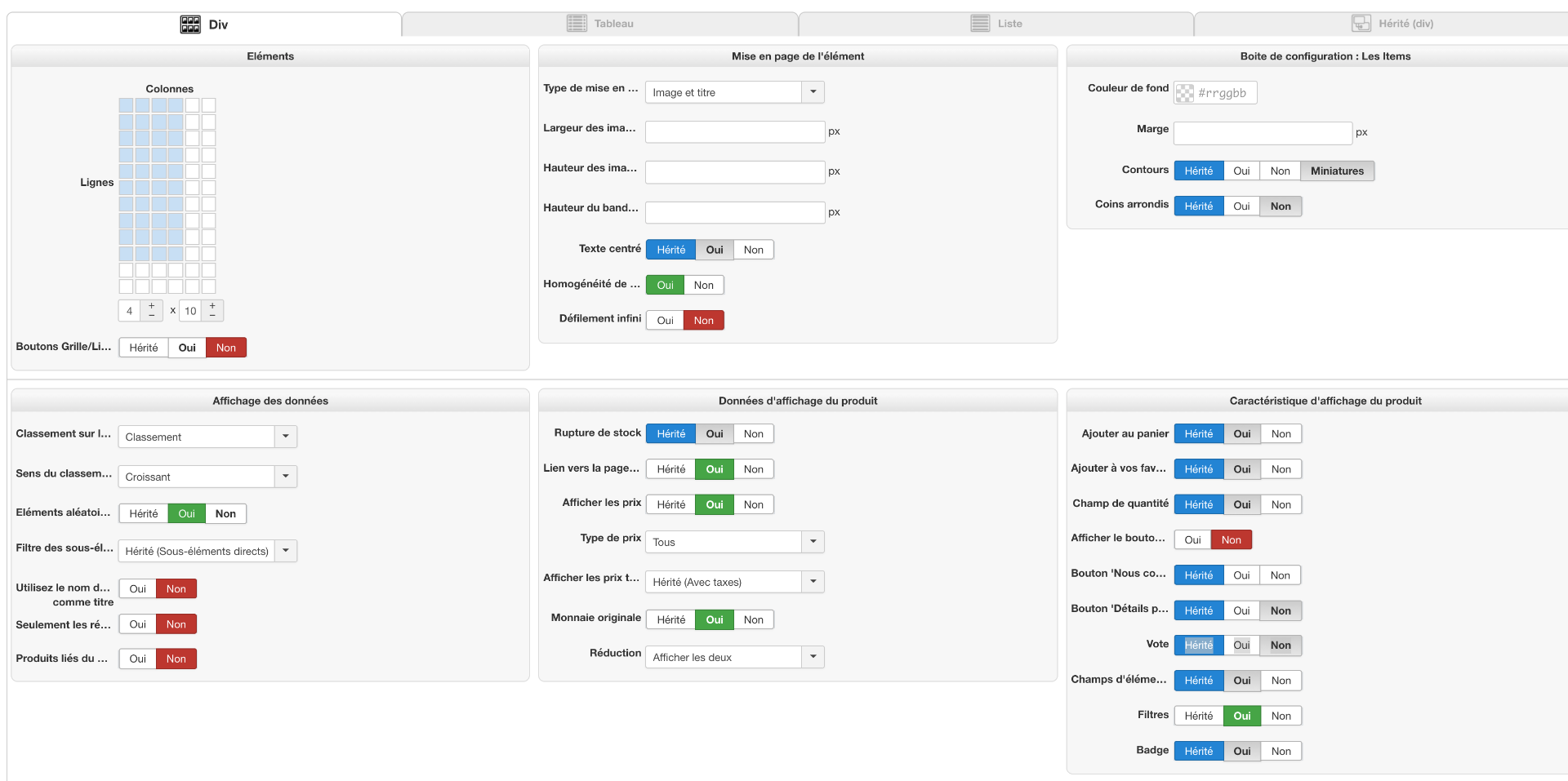 Donc non, je maintiens, vous avez bien un onglet "products options" dans l'élément de menu avec l'id 127, et HikaShop se base sur ces options là pour l'affichage de ce listing de produits.