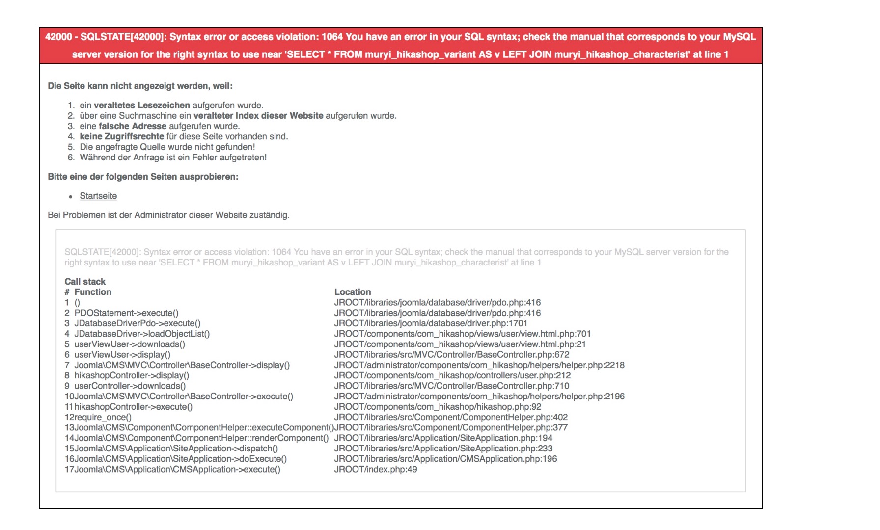since I updated Hikashop about 5% of my customers can't access their "Customer download space" they get an errormessage