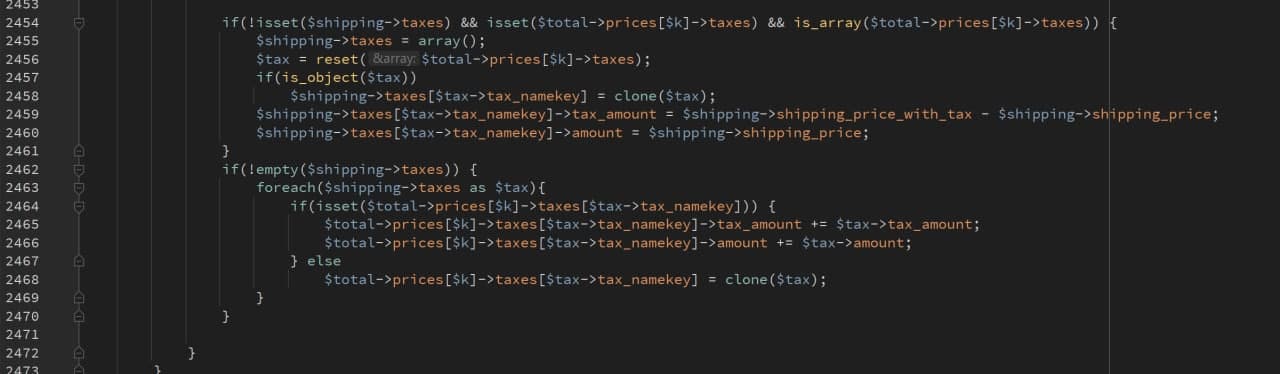 $total->prices[$k]->taxes[$tax->tax_namekey] = clone($tax);to: