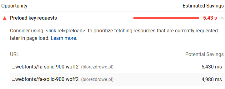As you can see there, the processing of the HTML and its sending to the browser itself takes up 4.17 seconds, while the retrieval of the woff2 file takes up only 0.2 seconds and is done in parallel to other files necessary for the rendering of the page (like the images, CSS files, js files, etc). So even if you remove that file, you won't gain any noticable speed improvment. Maybe 0.05 seconds.