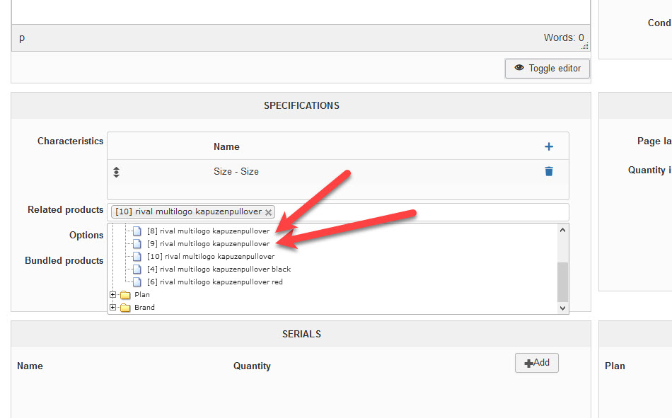 Now, I would add Variants SIZE (M, L, XL) with each product.