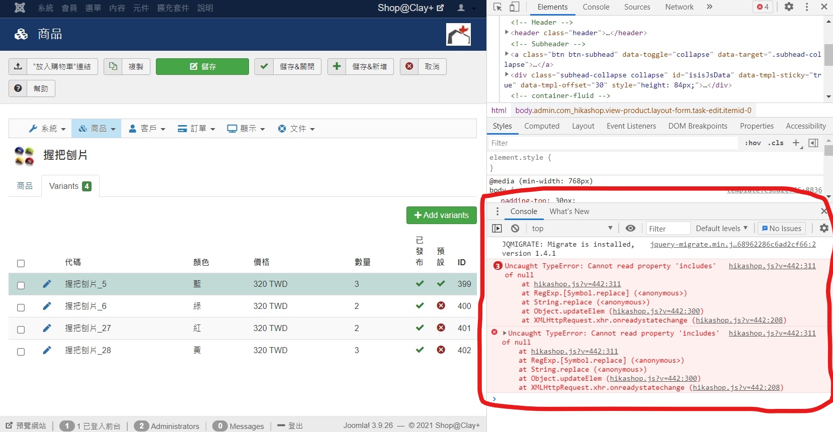 However, there is a problem appears after the recent update in both Joomla and Hikashop. The variants pages of each products didn't show the edit options after I click the products (see as attached image).