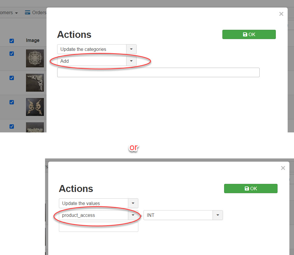 New functionality "actions" button on products not working