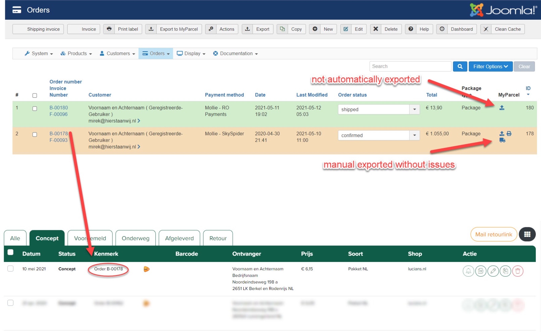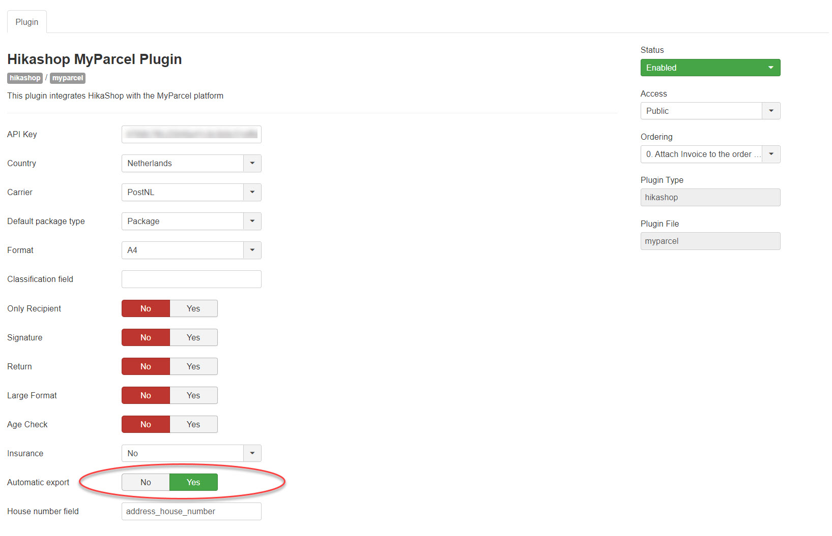 When this setting is activated, the plugin will automatically export the orders to MyParcel when the order status changes from another status to a status enabled in the column "MyParcel" of the order statuses listing.