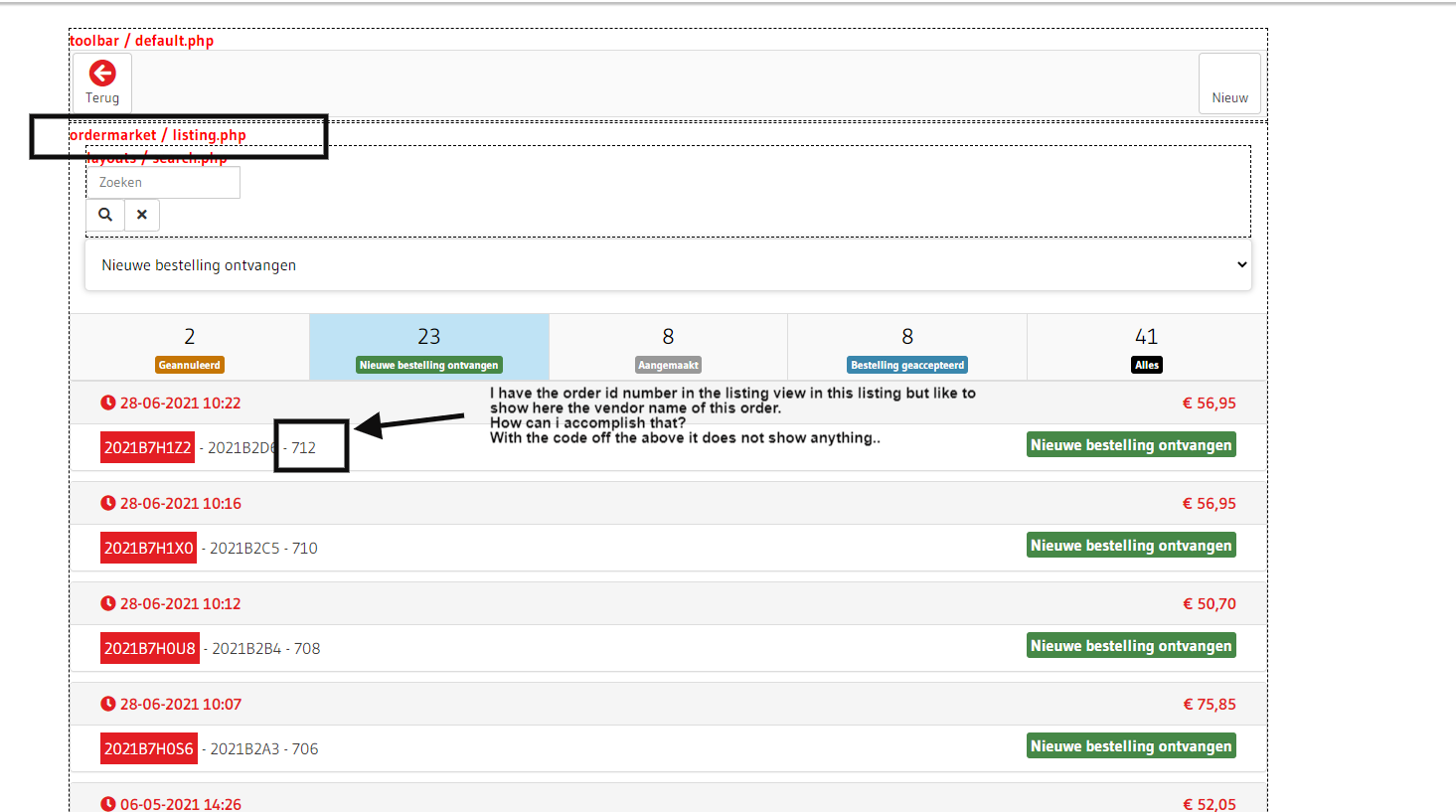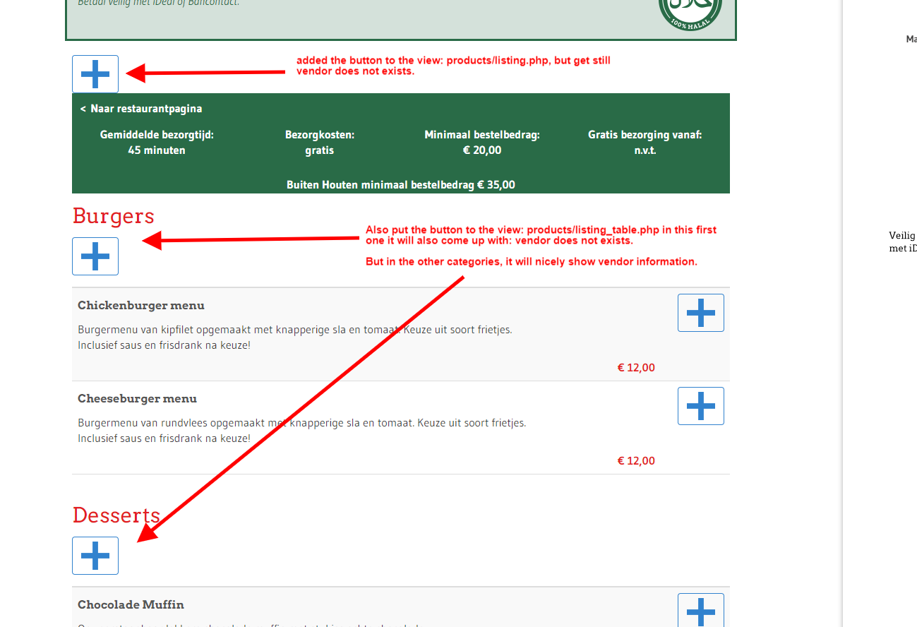 I moved the button to the product / listing.php with this code: