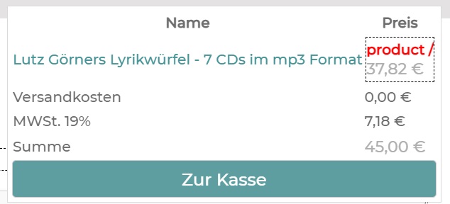 - You could turn off the display setting for the taxes row in the settings of the cart module. That way, the system will display 45e for the price of the product.