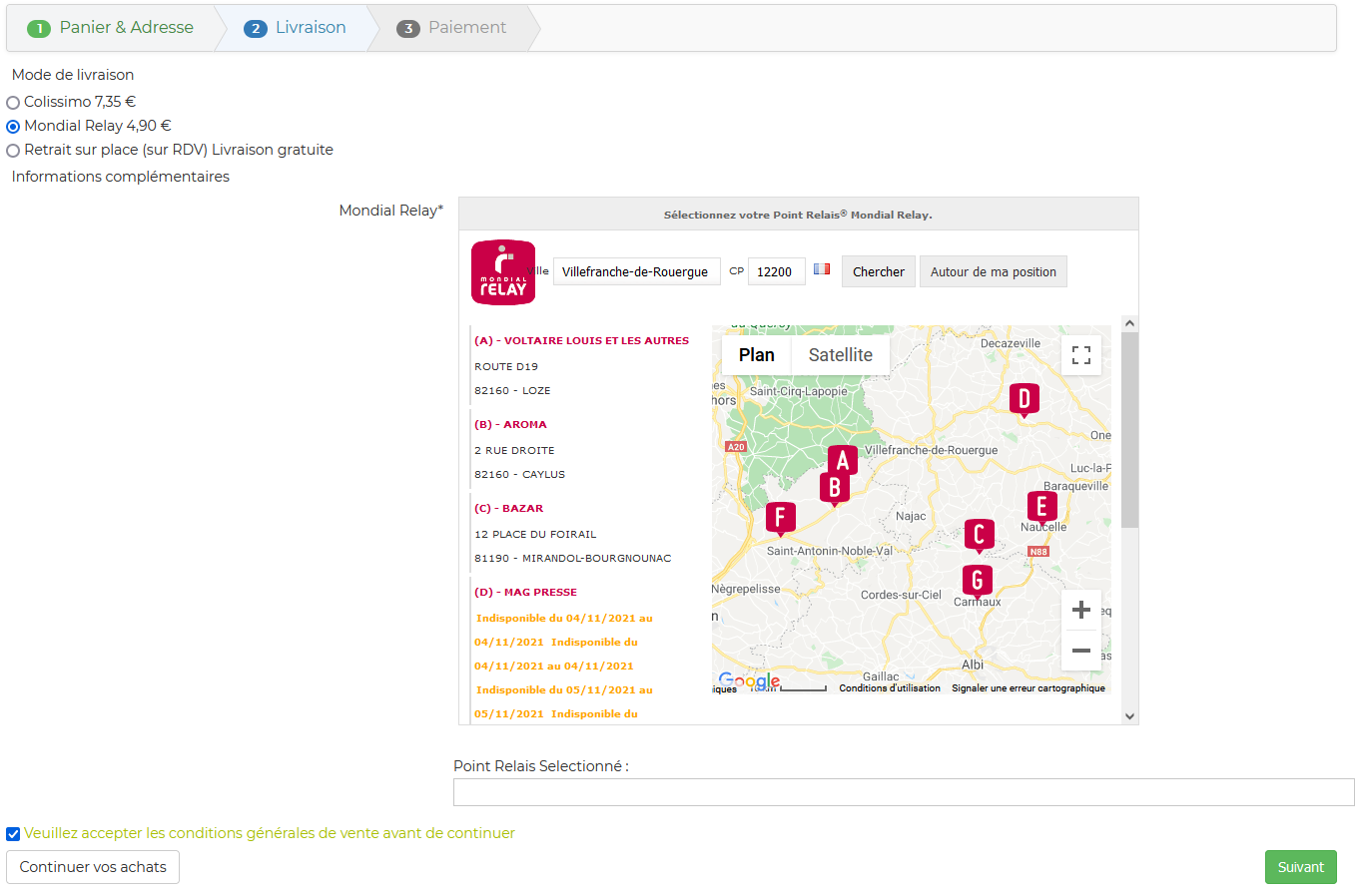 "Je vous remercie pour votre demande. En effet, c’est un fonctionnement normal. sur notre site se trouve tous les Points Relais®, mais sur un plugin comme (Prestashop, Shopify, Woocommerce, etc…), ou en webservices ou encore l’espace professionnel CONNECT, il n’y a pas les Points Relais® « saturés ».