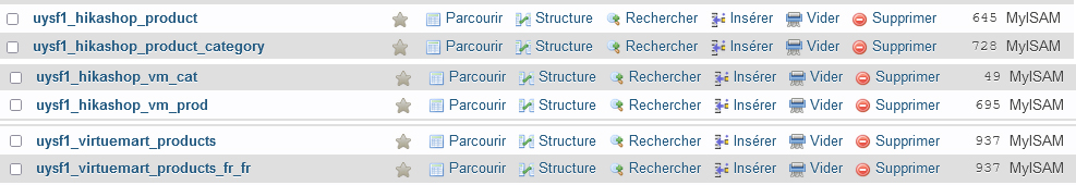 Je tente en local d'importer pour un ami le contenu d'une boutique Virtuemart version 3.8.8 dans Hikashop 4.4.4 starter.